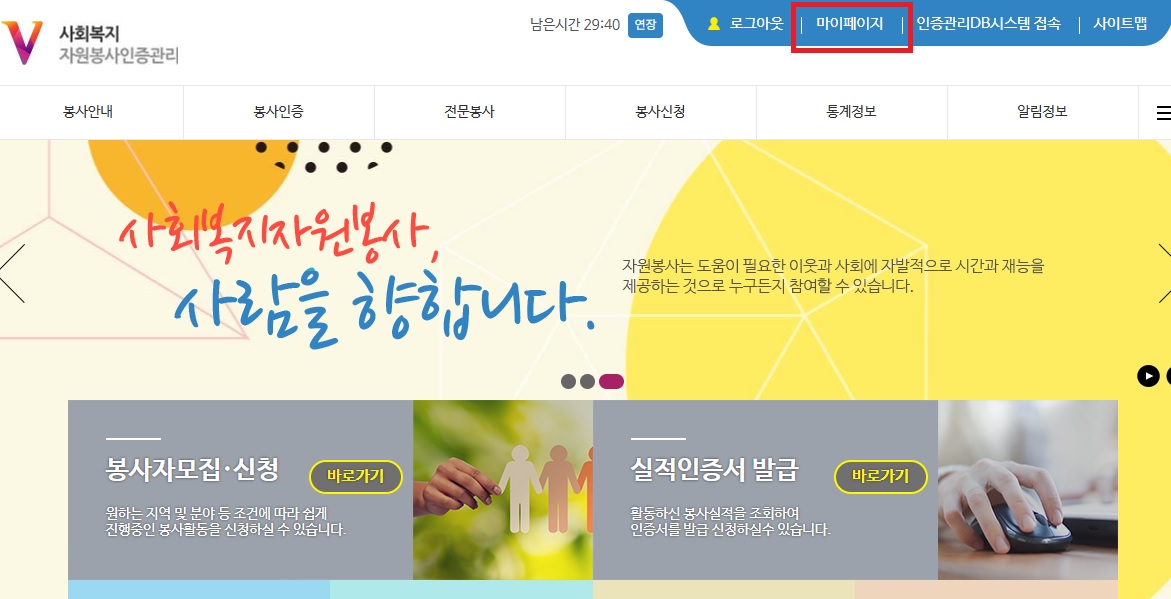 ② 로그인 > 마이페이지 → ‘봉사실적 조회’