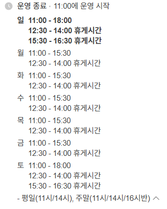 - 주말 및 공휴일: 11시, 오후 14시, 16시30분