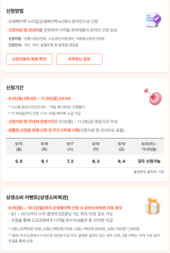 - 상생페이백 신청기간: 9월 15일~11월 30일