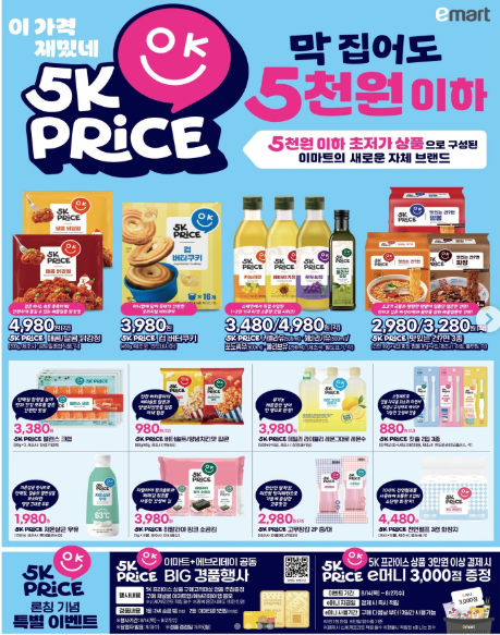 이마트가 초저가 브랜드 ‘오케이 프라이스(5K PRICE)’를 공식 론칭했습니다.