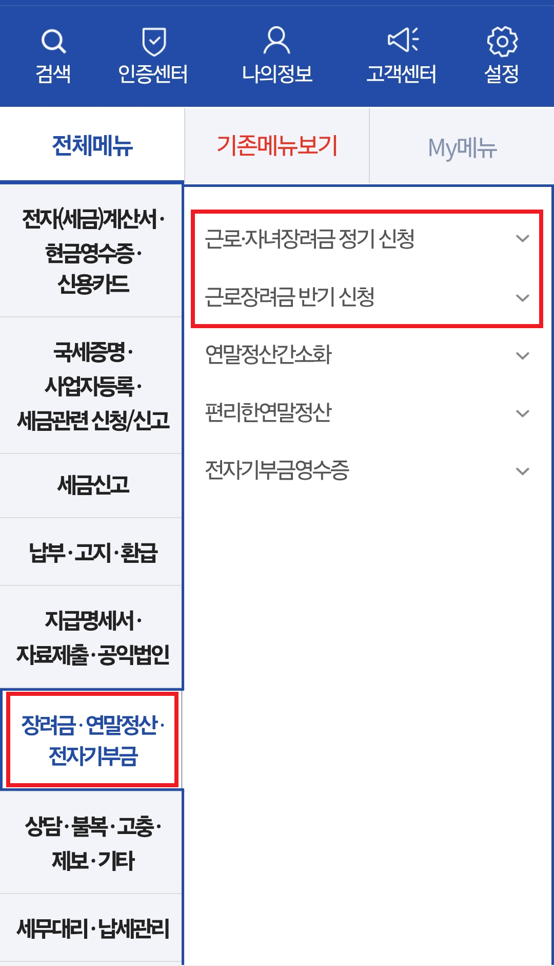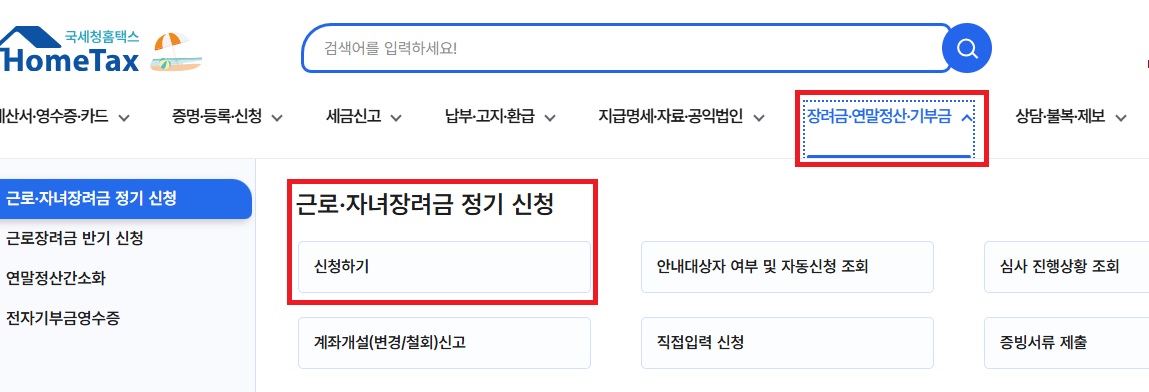 - 신청/제출 > 근로장려금 신청